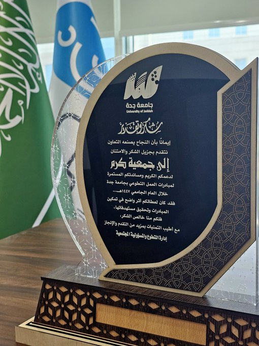 كرمت إدارة التطوع والمسؤولية المجتمعية بجامعة جده , جمعية كرم للخدمات الإنسانية , تقديراً لجهودها البارزة في تنفيذ المبادرات المجتمعية , وذلك ضمن حفل " مبادرون" في نسخته الثالثة , والذي أقيم برعاية سعادة أ.د عبيد بن علي آل مظف , و يأتي هذا التكريم تأكيداً على الدور الفعّال الذي تقدمه الجمعية في خدمة المجتمع , وتعزيز العمل التطوعي من خلال مبادرات نوعية , تسهم في تحسين جودة الحياة وإحداث أثر إيجابي مستدام